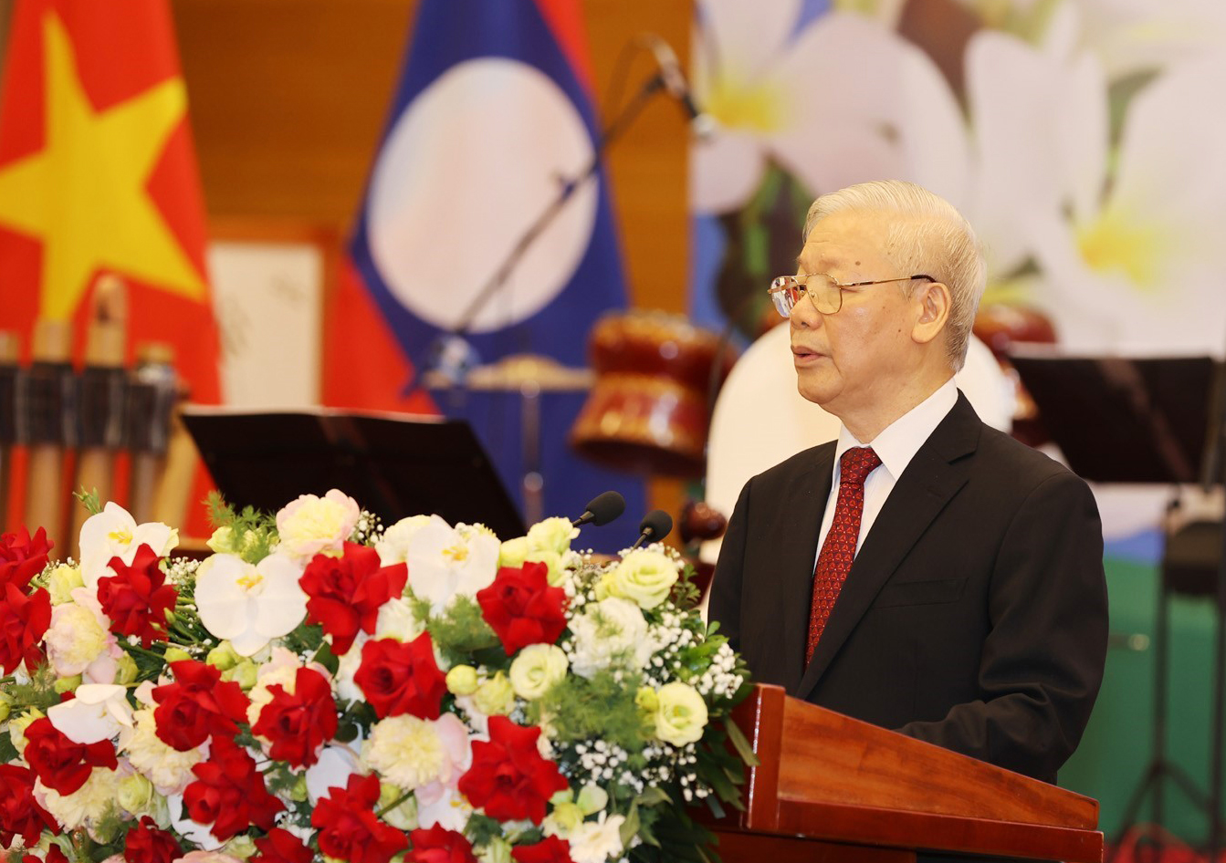 Đảng, Nhà nước và nhân dân Việt Nam luôn nhận thức sâu sắc rằng, mỗi thắng lợi của Việt Nam đều in đậm dấu ấn về sự ủng hộ, giúp đỡ to lớn, chí nghĩa, chí tình của Đảng, Nhà nước và nhân dân Lào anh em. Chúng tôi nguyện sẽ làm hết sức mình cùng với Đảng, Nhà nước và nhân dân Lào bảo vệ, giữ gìn và vun đắp quan hệ đặc biệt Việt Nam - Lào ngày càng phát triển mạnh mẽ, thiết thực, hiệu quả trên tất cả các lĩnh vực, vì sự phồn vinh và hạnh phúc của nhân dân hai nước, vì hòa bình, ổn định, hợp tác và phát triển ở khu vực và trên thế giới.